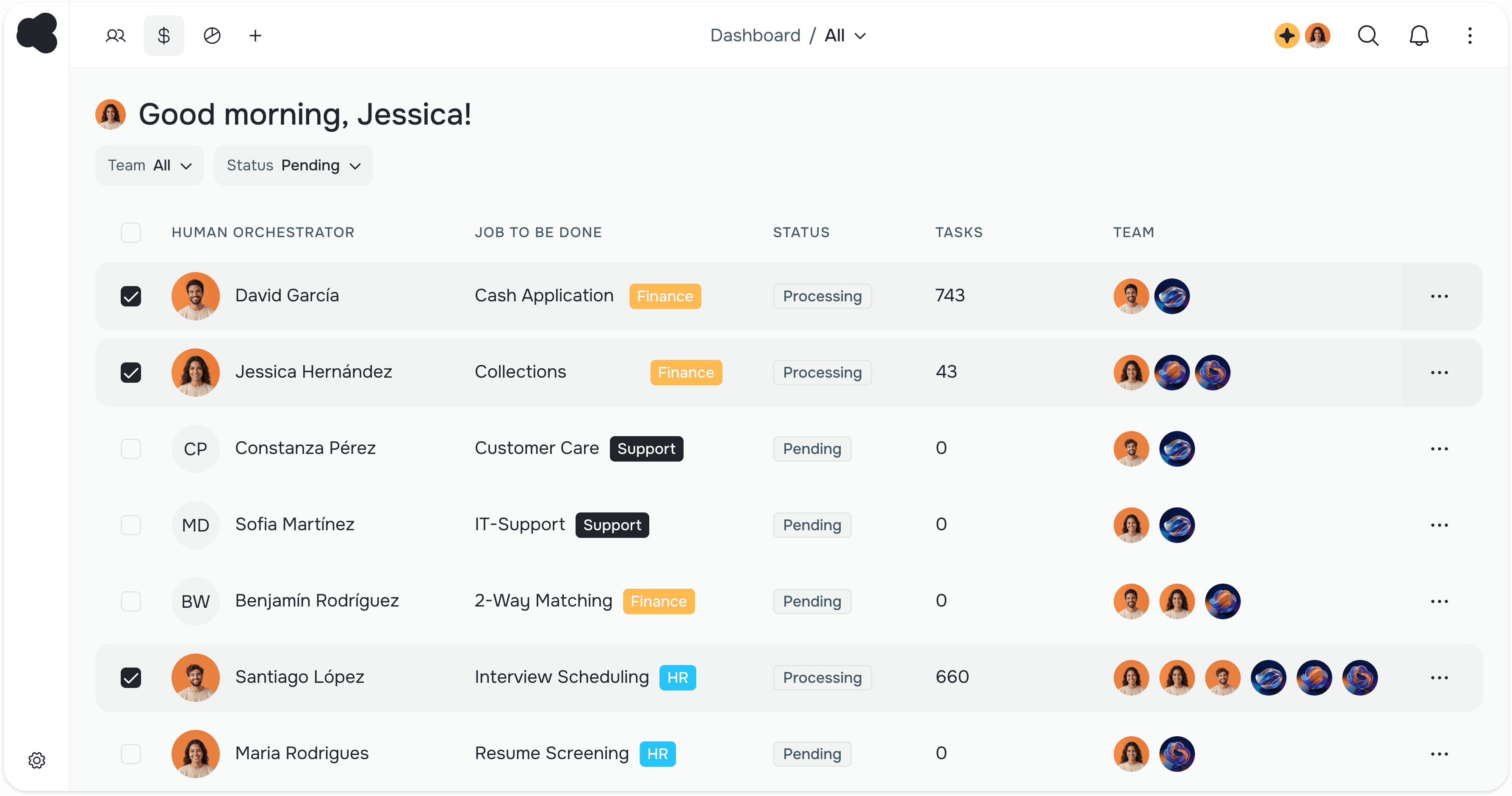 Humans that work with AI agents to get the job done. Expert teams that handle exceptions. Pay for outcomes, not hours.