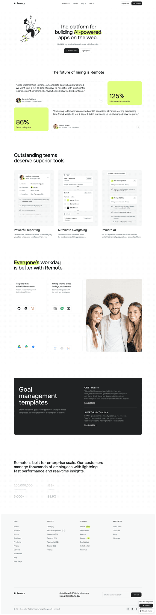 Designed for real businesses like yours: freelancers crafting from home offices, startups disrupting industries, agencies delivering client work — Remote works the way you do.