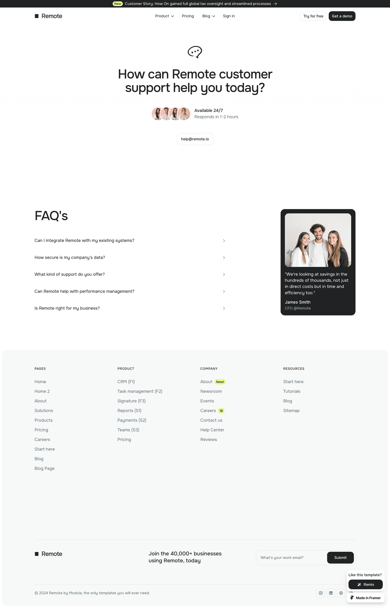 Say hello to Remote — a fresh take on SaaS website templates that actually makes sense.